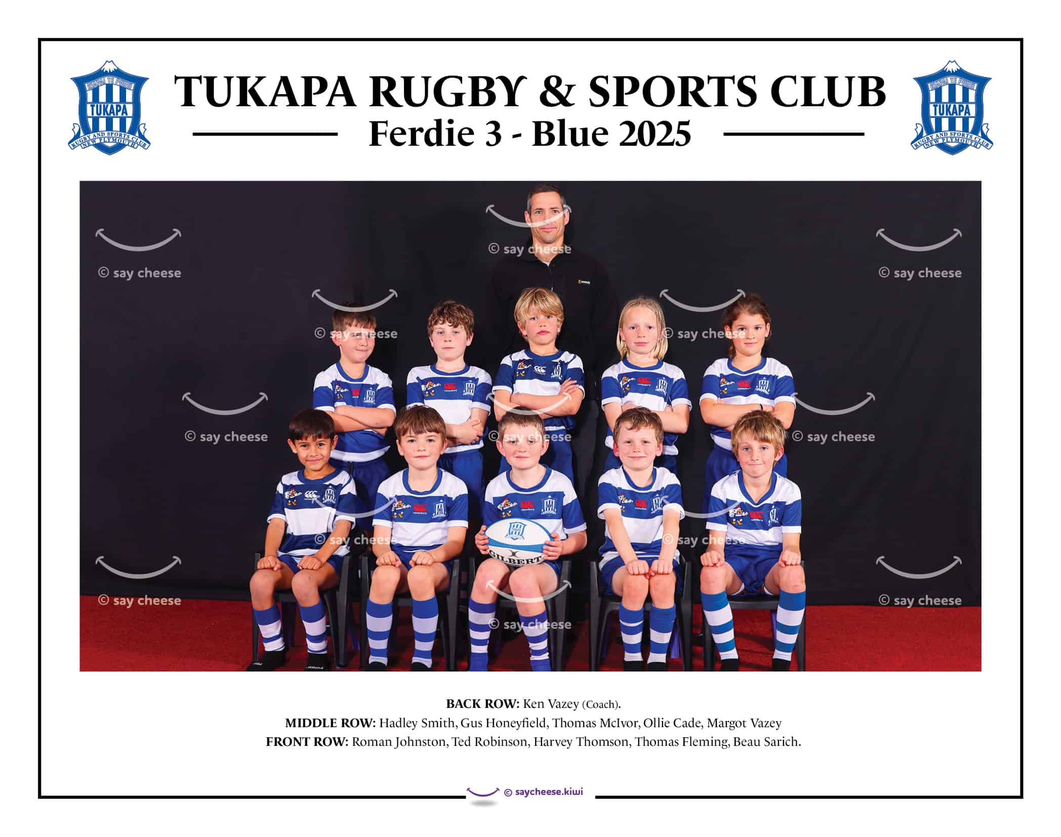 BACK ROW: Ken Vazey (Coach). MIDDLE ROW: Hadley Smith, Gus Honeyfield, Thomas McIvor, Ollie Cade, Margot Vazey FRONT ROW: Roman Johnston, Ted Robinson, Harvey Thomson, Thomas Fleming, Beau Sarich.