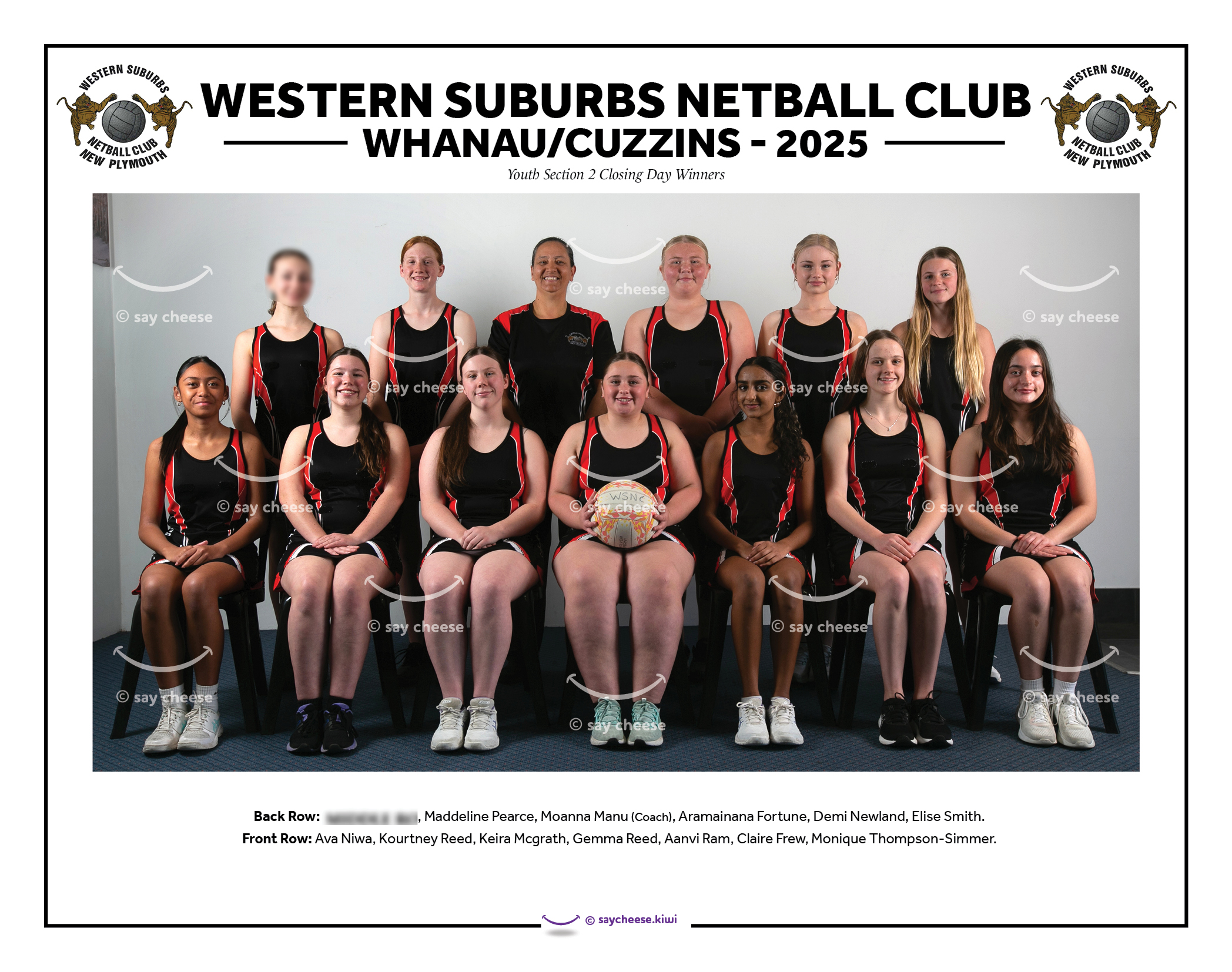 Back Row: Anonymous, Maddeline Pearce, Moanna Manu (Coach), Aramainana Fortune, Demi Newland, Elise Smith.